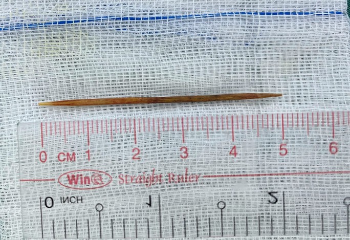 - Bị đau bụng nhiều tuần nhưng không biết mình nuốt dị vật từ khi nào. Chỉ đến khi thủng ruột, cậu bé 8 tuổi mới biết mình nuốt tăm tre