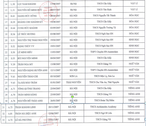 33 học sinh đầu tiên trúng tuyển lớp 10 THPT chuyên trường ĐH Sư phạm