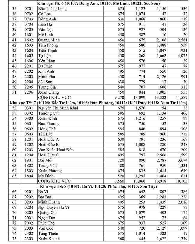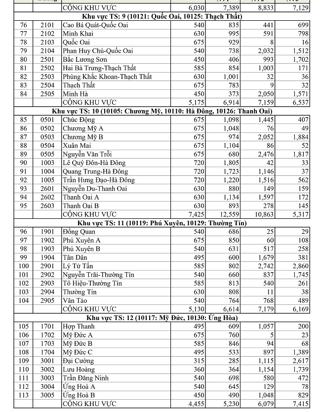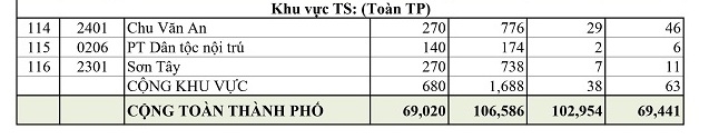Hà Nội công bố số lượng học sinh dự tuyển lớp 10 của từng trường THPT