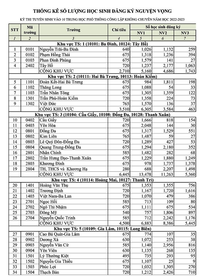 Ngày 30/5, Sở Giáo dục và Đào tạo (GD&ĐT) Hà Nội vừa công bố số lượng học sinh đăng ký dự tuyển vào lớp 10 của từng trường THPT công lập không chuyên năm học 2022-2023.
